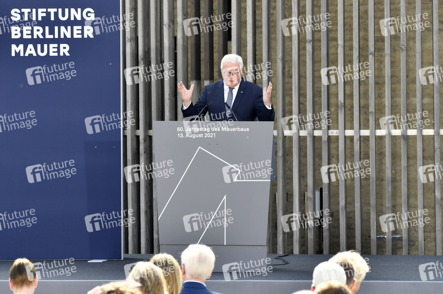 Frank-Walter Steinmeier bei der zentralen Gedenkveranstaltung zum 60. Jahrestag des Mauerbaus auf dem Vorplatz der Kapelle der Versöhnung an der Gedenkstätte Berliner Mauer an der Bernauer Straße. Berlin, 13.08.2021