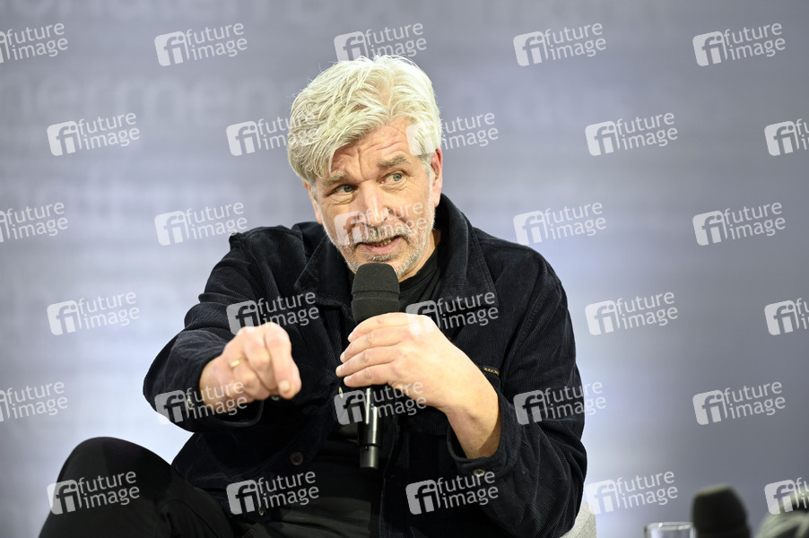 Karl Ove Knausgard bei einem Autorengespräch auf der Literaturbühne in der Glashalle auf der Leipziger Buchmesse 2025 auf dem Messegelände. Leipzig, 27.03.2025