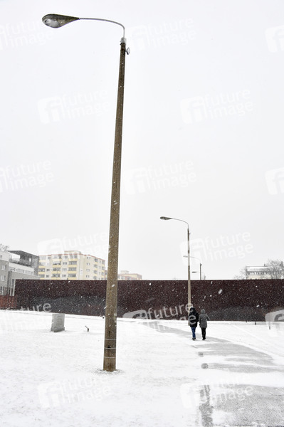 Schneefall an der Gedenkstätte Berliner Mauer. Berlin, 07.02.2021