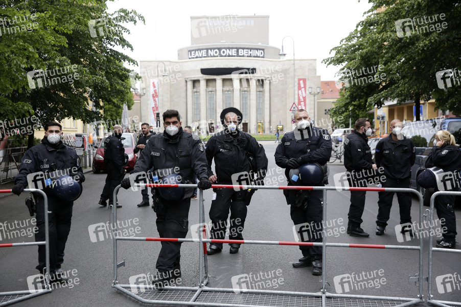 Demo, Demonstration, Demonstranten, Protest, Kundgebung, Corona-Demo, Corona, Sars-CoV-2, Covid-19, Coronavirus, Coronaviren, Corona-Virus, Coronakrise, Corona-Krise, Corona-Pandemie, Coronamaßnahmen, Abstandhalten, Abstandsregel, Ausnahmesituation, Polizei, Polizeieinsatz, Polizeibeamte, Polizeipräsenz, Polizist, Polizisten, Polizistin, Sicherheitskräfte