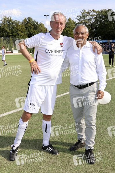 Peter Lohmeyer und Felix Magath beim Benefiz-Fußballspiel 'Kicken mit Herz' 2022 zu Gunsten des Herzzentrums des UKE im Stadium des SC Victoria. Hamburg, 04.09.2022