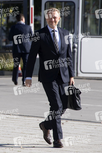 Christian Lindner bei der Ankunft zum Gespräch zwischen SPD, Bündnis 90/Die Grünen und FDP im CityCube Berlin. Berlin, 07.10.2021