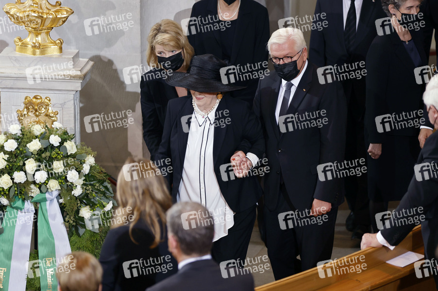 Frank-Walter Steinmeier mit Ingrid Biedenkopf beim Trauerstaatsakt zu Ehren des verstorbenen früheren Ministerpräsidenten Kurt Biedenkopf in der Frauenkirche Dresden. Dresden, 03.09.2021