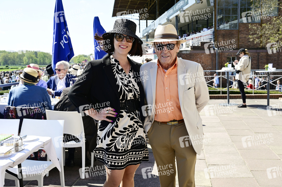 Claus Theo Gärtner mit Ehefrau Sarah Würgler bei der Großen Saisoneröffnung 2025 auf der Rennbahn Hoppegarten. Berlin, 20.04.2025