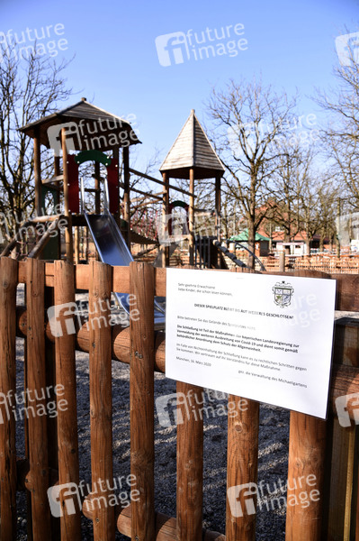 Schließung des Biergartens und des Spielplatzes im Michaeligarten. Nach zuletzt beschlossenen Schutzmaßnahmen gegen die Ausbreitung des Corona-Virus kommt das öffentliche Leben in München nahezu zum Erliegen. Betroffen sind fast alle Sehenswürdigkeiten, Museen, Plätze, Strassen, Restaurants, Biergärten, Universitäten u.v.m. München, 18.03.2020