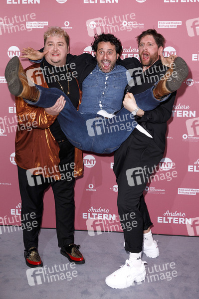 Daniel Zillmann, Serkan Kaya und Sebastian Schwarz bei der Premiere der TNT Comedy-Serie 'Andere Eltern' im Residenz Kino. Köln, 14.03.2019
