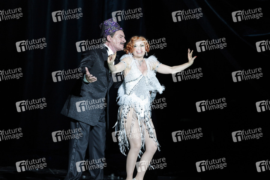 Katharine Mehrling (Daisy Darlington, Jazzkomponistin) und Helmut Baumann (Mustafa Bey, Attaché bei der türkischen Botschaft in Paris) bei der Fotoprobe 'Ball im Savoy' in der Komischen Oper. Berlin, 06.06.2013
