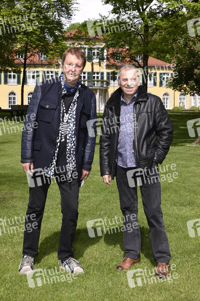 Hans-Jürgen Buchner und Günther Sigl bei der Pressekonferenz zum Eulenspiegel Flying Circus im Schlosspark Suresnes in der katholischen Akademie. München, 20.05.2021
