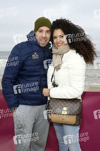 Dominic Boeer und Mira Meyer beim 9. Baltic Lights 2025 Charity-Schlittenhunderennen zu Gunsten der Welthungerhilfe zwischen der Seebrücke Ahlbeck und der Seebrücke Heringsdorf. Heringsdorf, 01.03.2025