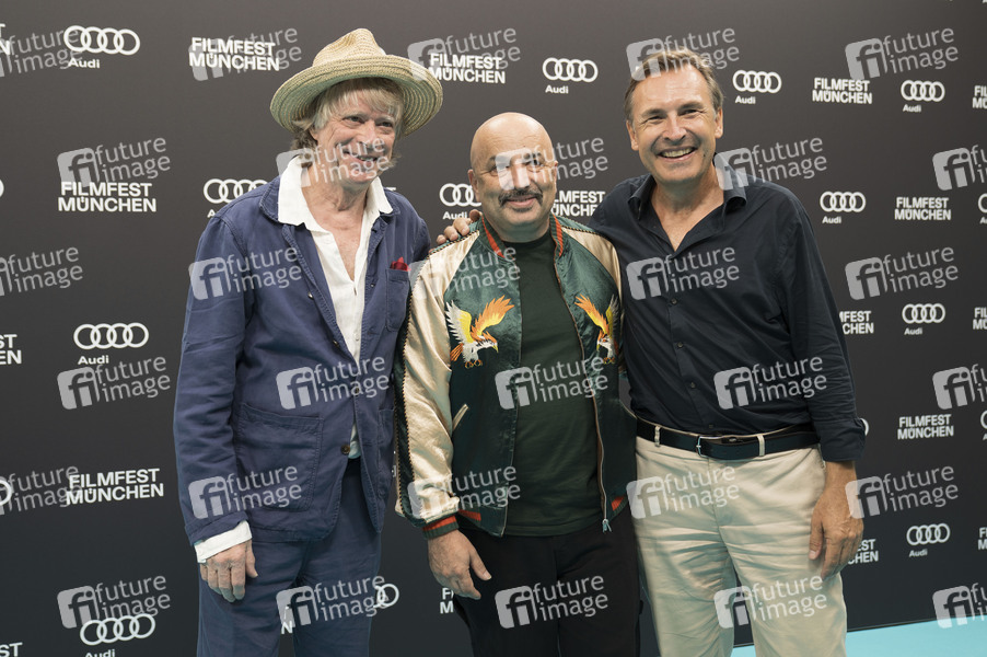 Helge Schneider, Sandro Giampietro und Thomas Linsmayer bei der Premiere des Dokumentarfilms 'The Klimperclown' auf dem 42. Filmfest München 2025 inm Deutschen Theater. München, 30.06.2025