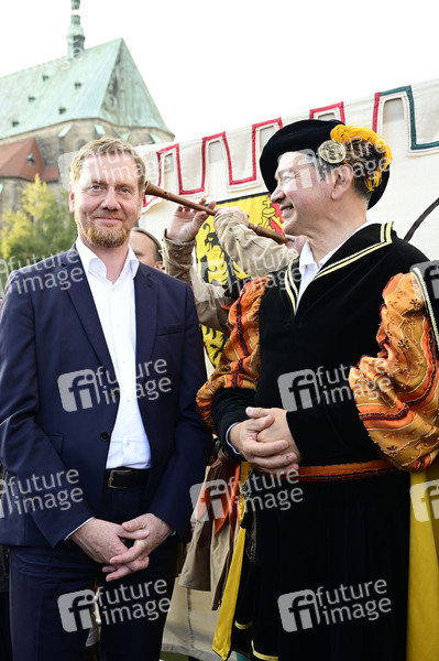Michael Kretschmer und Octavian Ursu am Eröffnungstag vom Altstadtfest an der Altstadtbrücke. Görlitz, 29.08.2025