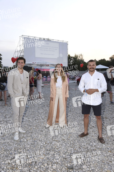 Samuel Schneider, Alicia von Rittberg und Edin Hasanovic bei der Premiere des Kinofilms 'Hello Again - Ein Tag für immer' beim Filmfest München Pop-Up im PopUp Autokino auf dem Zenith Parkplatz. München, 12.08.2020
