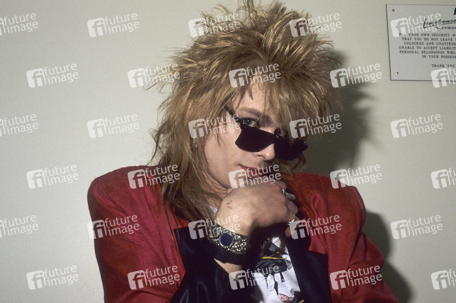 Michael Monroe von Hanoi Rocks bei einem Photoshooting in einem TV-Studio. London, 24.02.1990