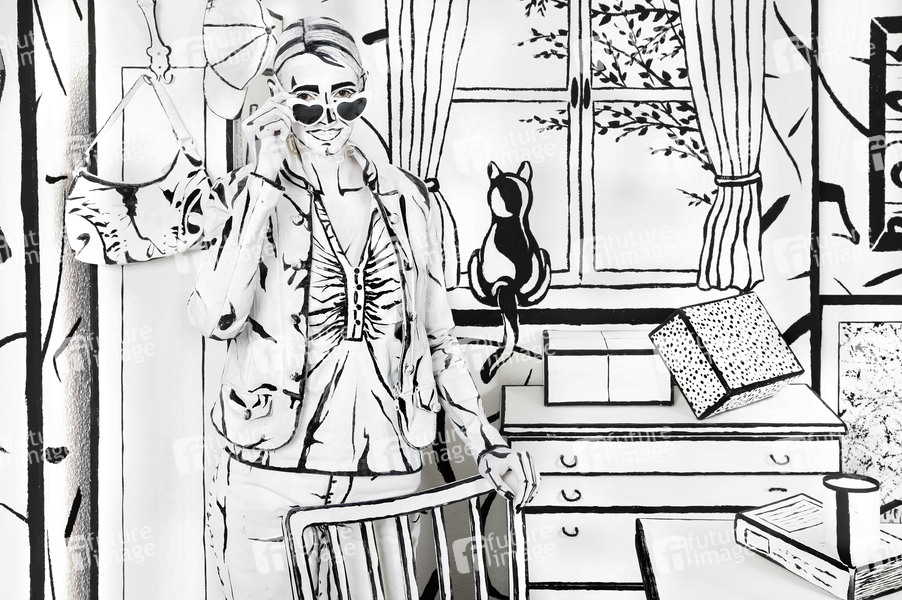 Bodypainting, Körperfarbe, Körperkunst, Körpermalerei, Künstler, Kunst, Art, Bodyart, Akt, Malerei, Camouflage, Farbe, Fotografie, Fotoshooting, Foto, Fotoart, Frau, Fotomodell, Fotomodel, Model, Aktmodel, Aktmodell, nackt, Nacktmodell, Bodypaintingmodel, Bodypaintingmodell, Comics, Bodypaintmodel, versteckte Körper, Studiokulisse, schwarzweiß, schwarz-weiß, Camouflage, monochrom, Tarnung, nude, nudeart, nude art, naked, naked art, naked model, nature, hidden bodies, comics style, art performance