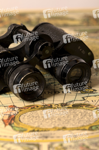 Unter Seefahrt versteht man das Befahren von Ozeanen und Meeren mit Schiffen und Booten. Im Bild ein Fernglas auf einer historischen Seekarte. (Symbolfoto, Themenfoto)