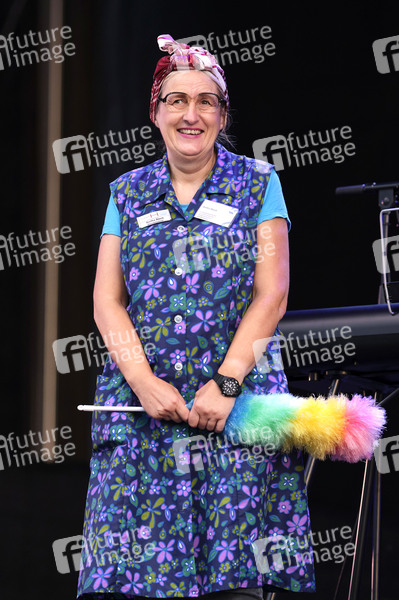 Reinigungsfachkraft Bertha Bloch / Susanne Nülle live bei der Show 'Der Comedy-Mix - Drei Theater, eine Show' auf der Autokultur-Bühne auf dem Schützenplatz. Hannover, 16.06.2020