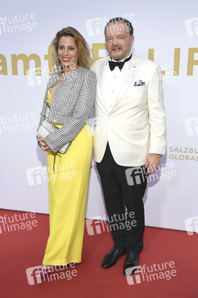 Alexander Fürst zu Schaumburg-Lippe mit Ehefrau Mahkameh Navabi Fürstin zu Schaumburg-Lippe bei der amfAR Gala 2025 anlässlich der Salzburger Festspiele 2025 in der Residenz. Salzburg, 24.08.2025