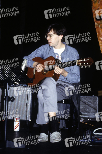 Simon Jeffes vom Penguin Cafe Orchestra beim Soundcheck im Mermaid Theatre. London, 16.12.1984