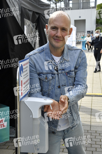Sänger, Oli P., Schauspieler, Moderator, Oliver Petszokat, Musik, Konzert, Auftritt, Bühne, Stage, live, Unterhaltung, Entertainment, Kultur, Desinfektion, Corona, Sars-CoV-2, Covid-19, Coronavirus, Coronakrise, Corona-Krise, Corona-Pandemie, Coronamaßnahmen, Corona-Schutz, Kontaktverbot, Mindestabstand, Social Distancing, Abstand, Abstandhalten, Abstandsregel, Auto, Autokonzertreihe, Autokonzert, Auto-Konzert
