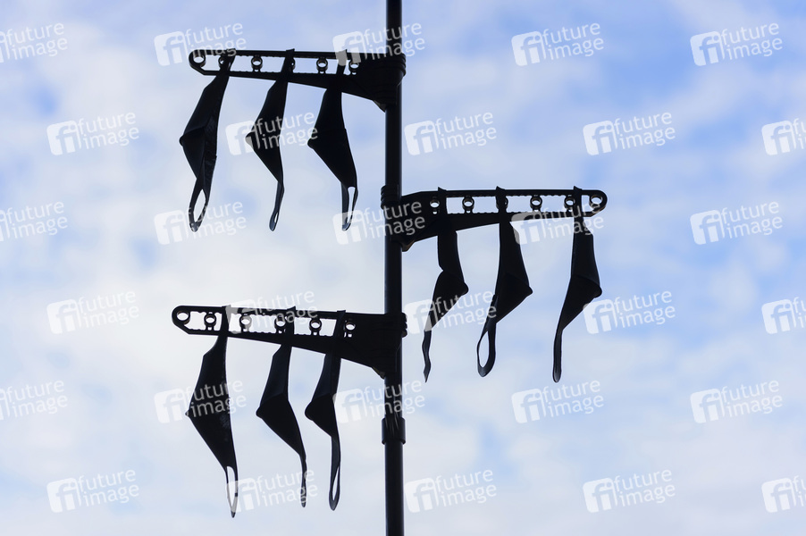 Gereinigte Mundschutze zum Trocknen aufgehängt