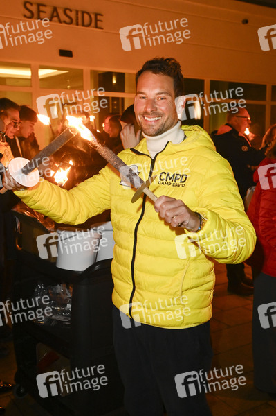Robert Redweik beim Opening der Baltic Lights 2025 mit Fackellauf an der Seebrücke Heringsdorf. Heringsdorf, 28.02.2025
