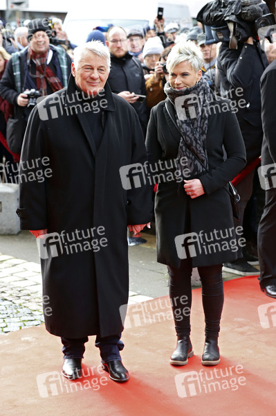 Heinz Hoenig und Ehefrau Annika Kärsten-Hoenig bei der Trauerfeier für Jan Fedder in der Hauptkirche St. Michaelis. Hamburg, 14.01.2020