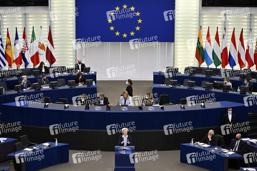 Krieg, Russland, Ukraine, Kriegsverbrechen, Europäisches Parlament, Plenum, Plenartagung, Plenardebatte, Plenarsitzung, Debatte, Rede, Politik, Strasbourg, Strassburg, Europaparlament, Europa-Politik, EU-Abgeordnete, EU-Parlament, EP, Parlament der Europäischen Union, European Parliament, European Union, Parlamentum Europaeum, MdEP, Mitglied des Europäischen Parlaments, Politikerin, Deutschland, CDU, Präsidentin der Europäischen Kommission, EU-Präsidentin