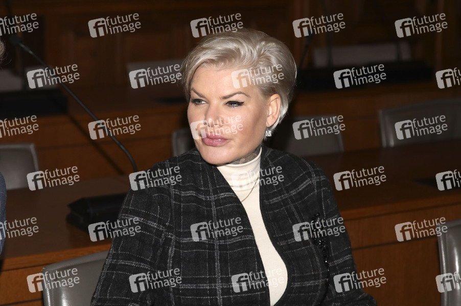 Melanie Müller beim Berufungsprozess wegen Verwendens von Kennzeichen verfassungswidriger und terroristischer Organisationen im Amtsgericht Leipzig. Leipzig, 18.12.2025