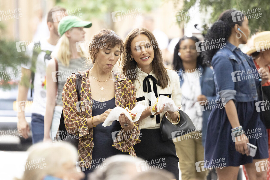 Rashida Jones und Natalie Portman bei den Drehbarbeiten zum Netflix Film 'Good Sex' imWashington Square Park. New York, 15.07.2025