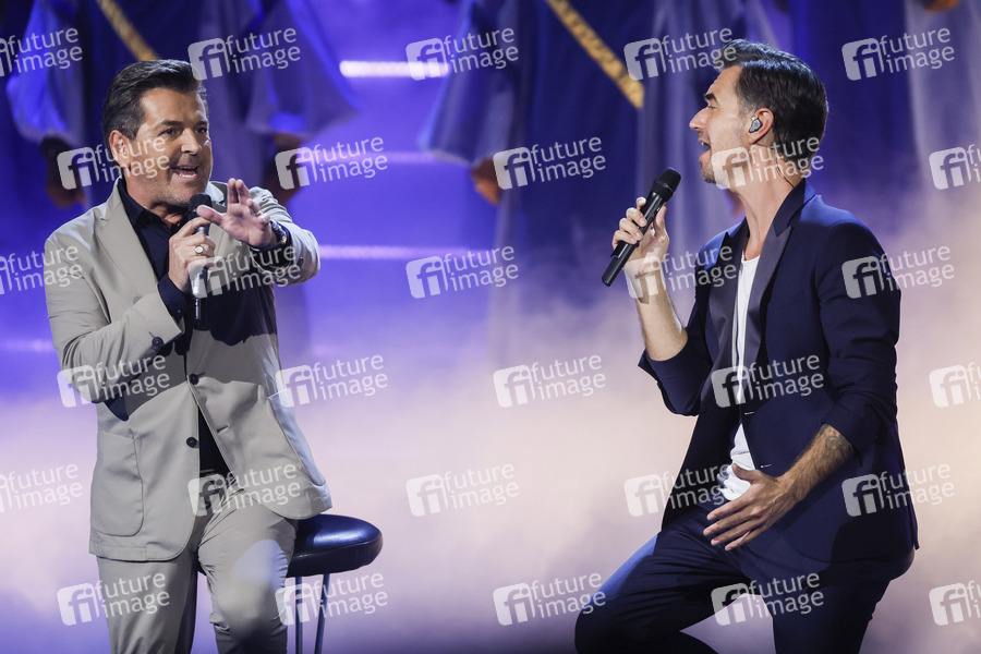 Thomas Anders und Florian Silbereisen bei der Aufzeichnung der TV Show 'Zum allerletzten Mal: Der grosse Schlagerabschied!' im Studio 3 der Media City. Leipzig, 22.10.2022