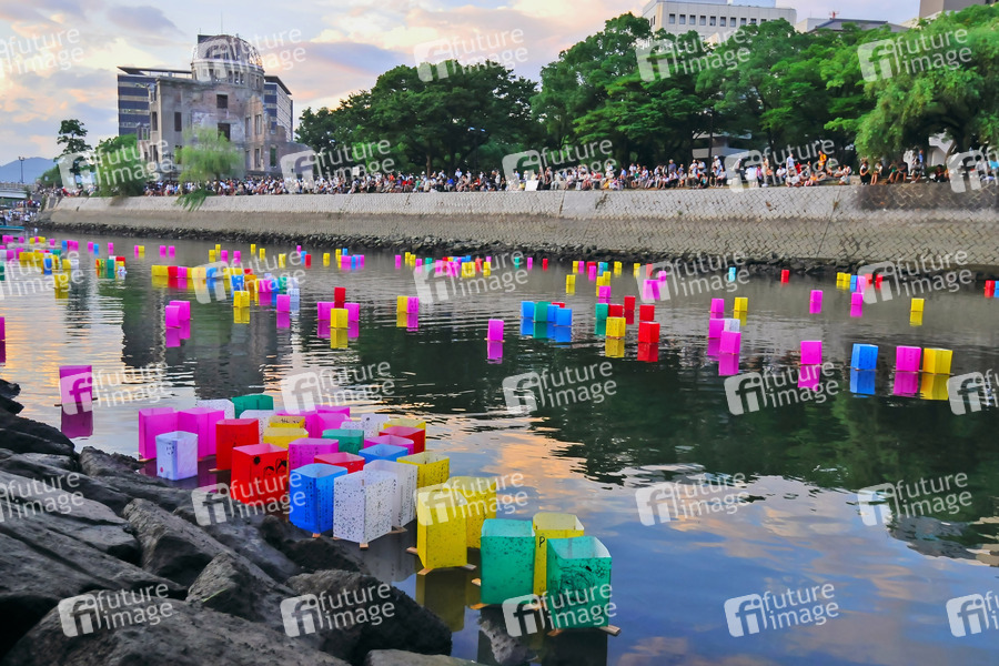 67. Gedenktag des Abwurfs der Atombombe auf Hiroshima. Laternen auf dem Motoyasu-Fluss am Friedensdenkmal in Hiroshima