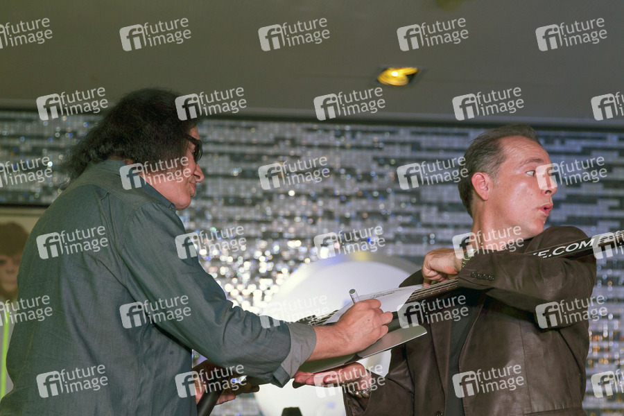 Gene Simmons von Kiss übergibt dem Hard Rock Cafe eine signierte Gitrarre. Berlin, 12.06.2013