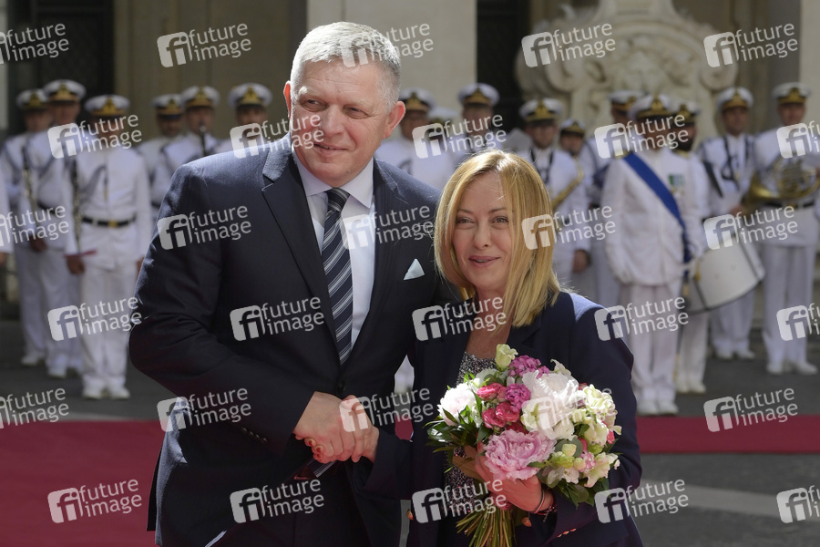 Politik, Staatsbesuch, Staatsvisite, Gespräch, bilaterale Gespräche, Treffen, Diplomatie, Staatsgast, Politiker, Ministerpräsident der Slowakei, SMER - sociálna demokracia, Politikerin, Ministerpräsidentin von Italien, Fratelli d'Italia, FdI