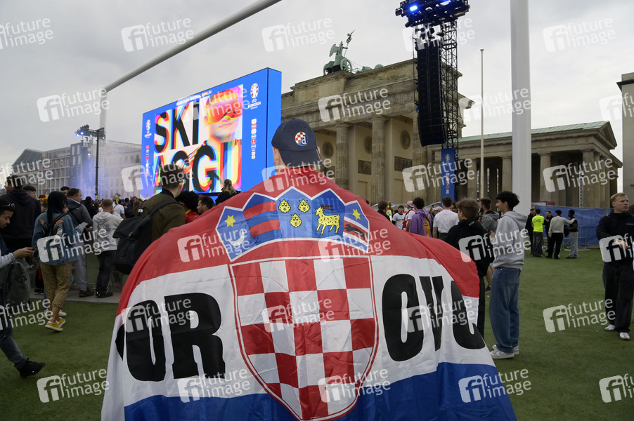 Fans auf der Fan Zone der UEFA EURO 2024 vor dem EM-Eröffnungsspiel Deutschland vs. Schottland am Brandenburger Tor. Berlin, 14.06.2024