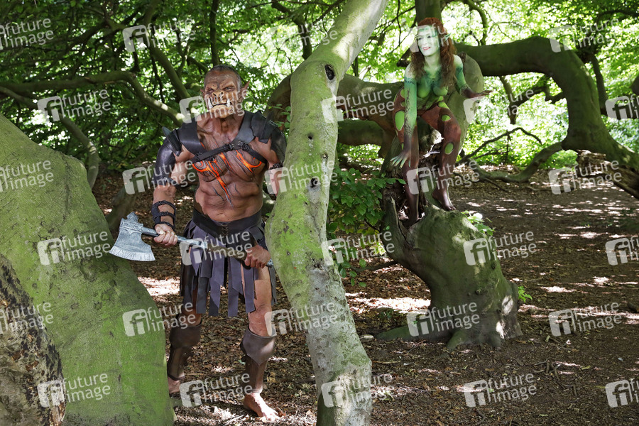 GEEK ART - Bodypainting and Transformaking: Märchenwald Fotoshooting mit Janina als Elfe und Fred Krull als Ork in der Süntelbuchenallee in Bad Nenndorf. - Ein Projekt des Fotografen Tschiponnique Skupin und des Bodypainters und Transformakers Enrico Lein