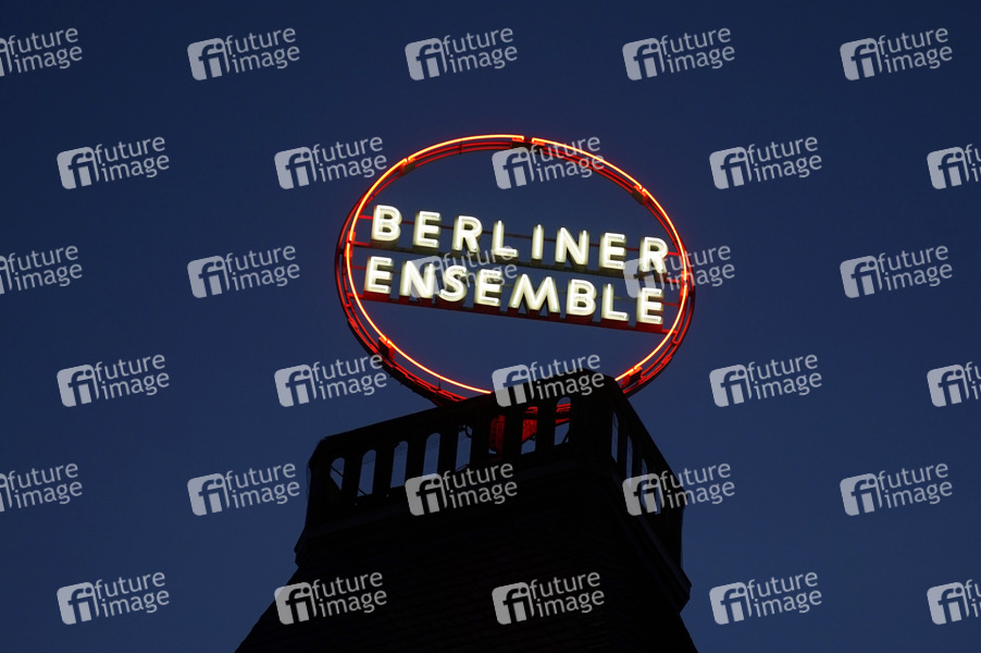 Das Logo auf dem Dach vom Theater Berliner Ensemble am Bertolt-Brecht-Platz. Berlin, 03.07.2020