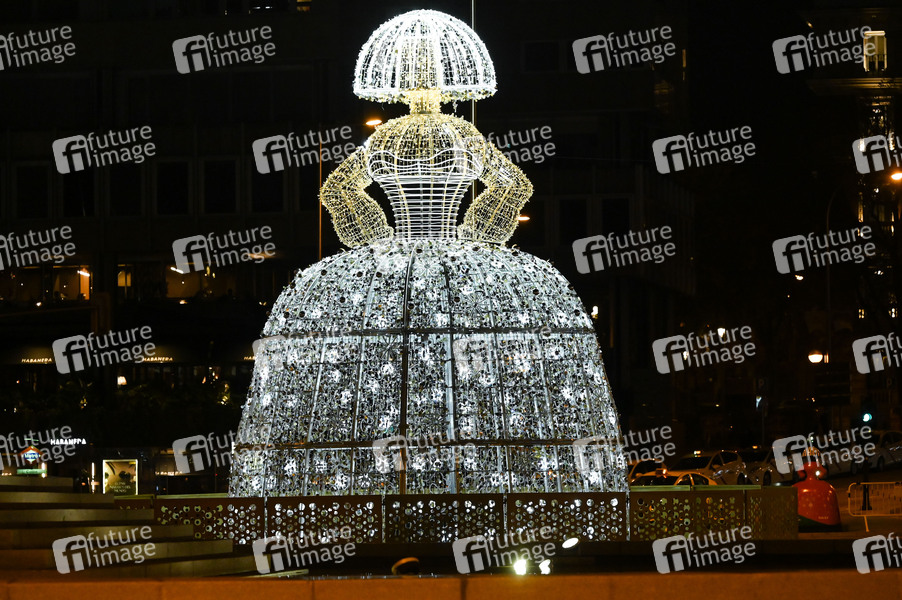 Las Meninas Installation auf der Plaza de Colon - Einschalten der traditionellen Weihnachtsbeleuchtung im Stadtzentrum. Madrid 26.11.2020
