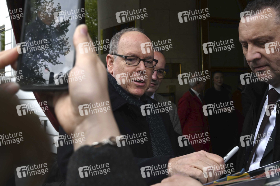 Fürst Albert II. von Monaco mit Fürstin Charlene bei ihrer Ankunft im Hotel Vier Jahreszeiten. Die Fürstenfamilie ist zur Eröffnung des Monaco-Abschnitts im Miniatur Wunderland nach Hamburg gekommen. Hamburg, 25.04.2024