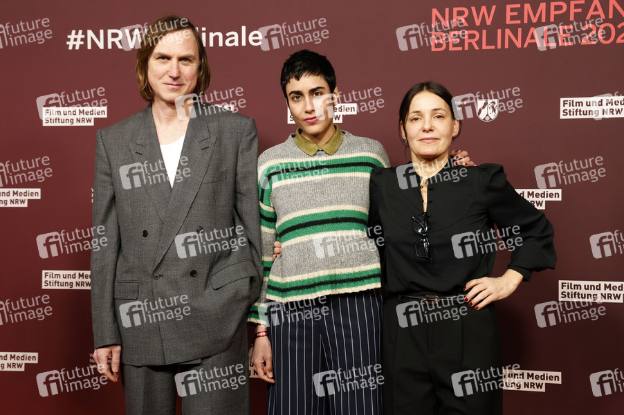 Lars Eidinger, Tala Al-Deen und Nicolette Krebitz beim 22. NRW Empfang des Landes NRW und der Film- und Medienstiftung NRW im Rahmen der Berlinale 2025 in der Vertretung des Landes Nordrhein-Westfalen. Berlin, 16.02.2025