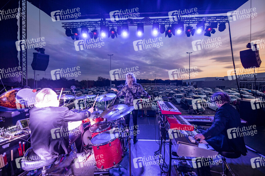 Sänger, Musiker, Band, Rock, Musik, Konzert, Auftritt, Bühne, Stage, live, Unterhaltung, Entertainment, Kultur, Corona, Sars-CoV-2, Covid-19, Coronavirus, Coronakrise, Corona-Krise, Corona-Pandemie, Coronamaßnahmen, Corona-Schutz, Kontaktverbot, Mindestabstand, Social Distancing, Abstand, Abstandhalten, Abstandsregel, Auto, Autokonzertreihe, Autokonzert, Auto-Konzert
