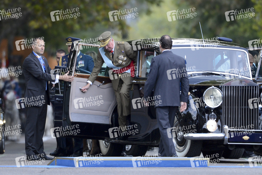 Die spanische Königsfamilie bei der Hommage an die Nationalflagge mit Militärparade am Palacio Real, Madrid