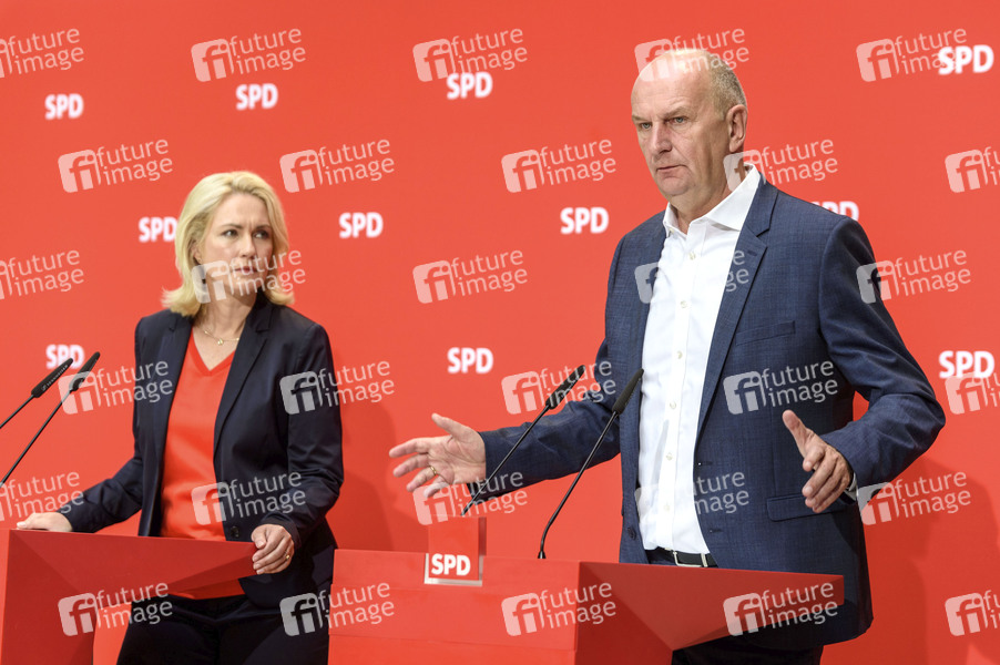Manuela Schwesig und Dietmar Woidke bei einer Pressekonferenz der SPD-Spitzenkandidaten zu den Landtagswahlen in Brandenburg und Sachsen im Willy-Brandt-Haus. Berlin, 02.09.2019