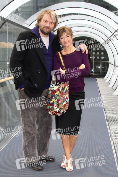 Charly Huebner und Anke Engelke beim Fototermin am Set des ARD Fernsehfilms 'Die Reise zum Mittelpunkt der Hallig' in den Räumen der Nord LB. Hannover, 11.05.2014