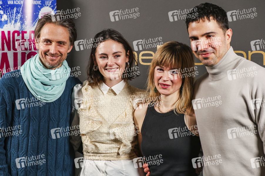 Axel Schreiber, Lea van Acken, Laura Fischer und Toni Gojanovic bei der Premiere des Kinofilms 'Fünf Finger sind ne Faust' im CineMotion. Berlin, 07.01.2025
