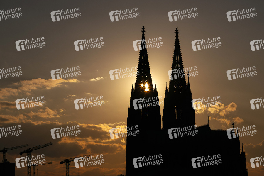 Kölner Dom, Domstadt, Krise, Kirchenkrise, katholische Kirche, Katholizismus, Kirchenskandal, Kindesmissbrauch, Missbrauch, Aufarbeitung, Verzögerung, Verschleppung, Gutachten, Vertrauenskrise, Gutachter, Missbrauchsfälle, Opfer, Entschädigung, unter Verschluss, Verdachtsfälle, Kirchenaustritte, Kirchenaustritt, Glaube, Konfession, Religion, Katholiken, Austrittswelle, Verantwortung, Vertuschung, katholische Kirche, Kirchenkritik, Kirchenkritiker, Priester, Pfaffen, Klerus, Sexualmoral, Scheinheiligkeit, Bistum, Missbrauchsskandal, Kirchensteuer, Gott, Sünde, Schuld, Kirchenrecht, Hohe Domkirche zu Köln, Sonnenuntergang, Glaubenskrise, Symbolbild, Symbolfoto