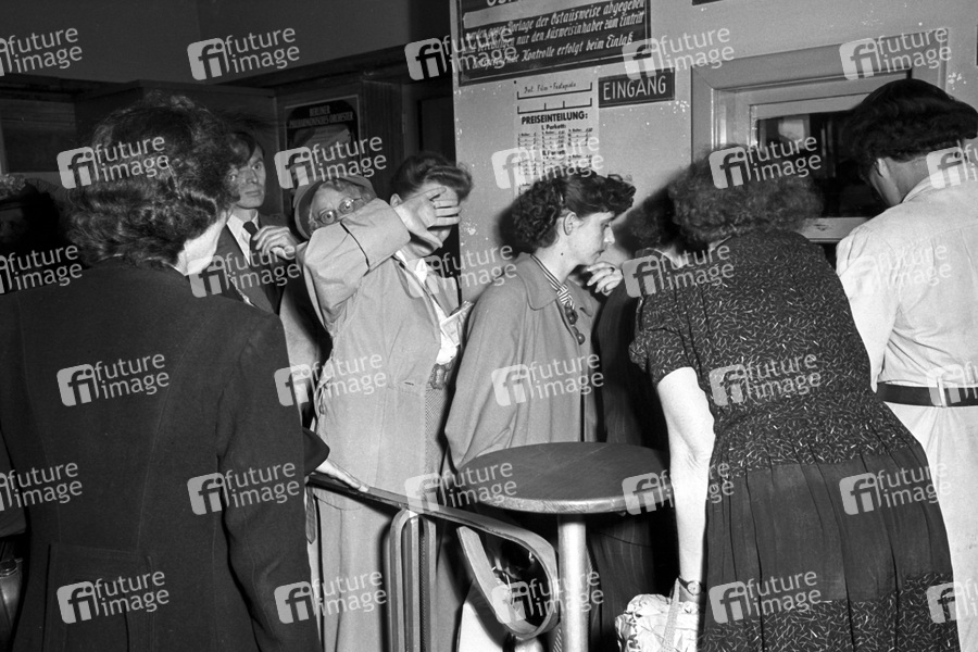 Ticketschalter auf der Berlinale 1951 / 1. Internationale Filmfestspiele Berlin. Berlin, 11.06.1951