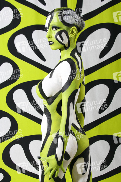 Bodypainting, Stoffdesign Anna Efverlund, Erotik, Frau, nackt, drinnen, weiblich, Muster, Chamäleon, erotic, woman, nude, indoor, female, chameleon
