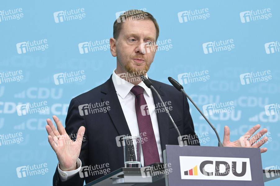 Michael Kretschmer bei der Pressekonferenz der CDU nach den Landtagswahlen in Thüringen und Sachsen im Konrad-Adenauer-Haus. Berlin, 02.09.2024