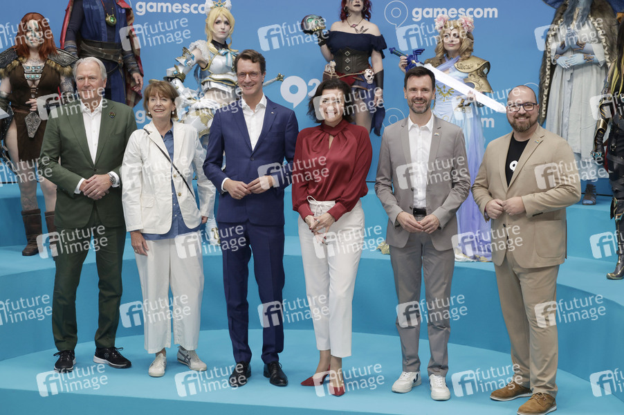 Spiele-Messe, Gaming, Gaming-Industrie, Spieleindustrie, Spielemesse, Gamingindustrie, Player, Spielesucht, Digitalisierung, Zocken, Daddeln, Games, Game, Spiele, PC-Spiele, Computerspiele, Konsolen, Konsolenspiele, Videospiele, Fair, Event, Gamer, Unterhaltungselektronik, Software, Hardware, europäische Leitmesse für digitale Spielekultur, internationale Gaming-Community, Virtual Reality, Browsergames, Spieletrends, game - Verband der deutschen Games-Branche, Vorsitzender der Geschäftsführung der Koelnmesse GmbH, Oberbürgermeisterin von Köln, Politiker, CDU, Ministerpräsident von Nordrhein-Westfalen, Politikerin, CSU, Bundesministerin für Forschung - Technologie und Raumfahrt, Geschäftsführer des Game-Verbandes, Vorstandsvorsitzender des game -Verbandes