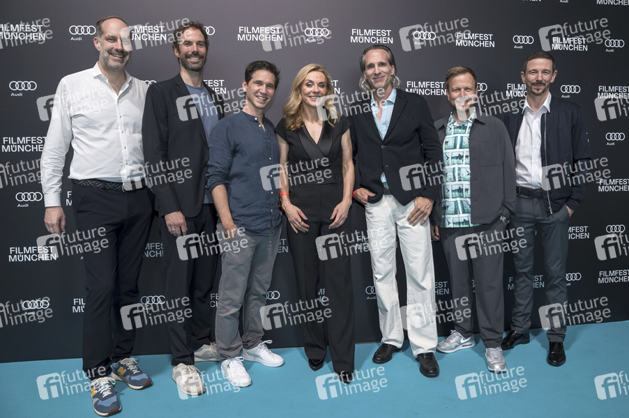 Christian Rohde, Gast, Philipp Stennert, Inga Leschek, Cyrill Boss, Jan Ehlert und Oliver Berben bei der Premiere der RTL+ Serie 'Die Nibelungen - Kampf der Königreiche' auf dem 42. Filmfest München 2025 im HFF Audimax. München, 27.06.2025